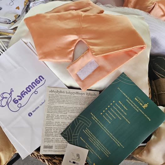 The sleeping mask is made of the highest quality 100% silk fabric, and the filling is made of 100% natural hand-sewn silk filler of Georgian production, which ensures maximum comfort.